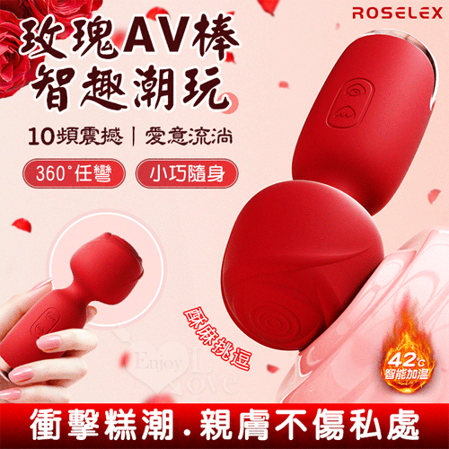 ROSELEX 玫瑰AV棒 ‧ 智趣潮玩10頻震撼衝擊 小巧随身360度彎曲加溫AV棒 - 紅