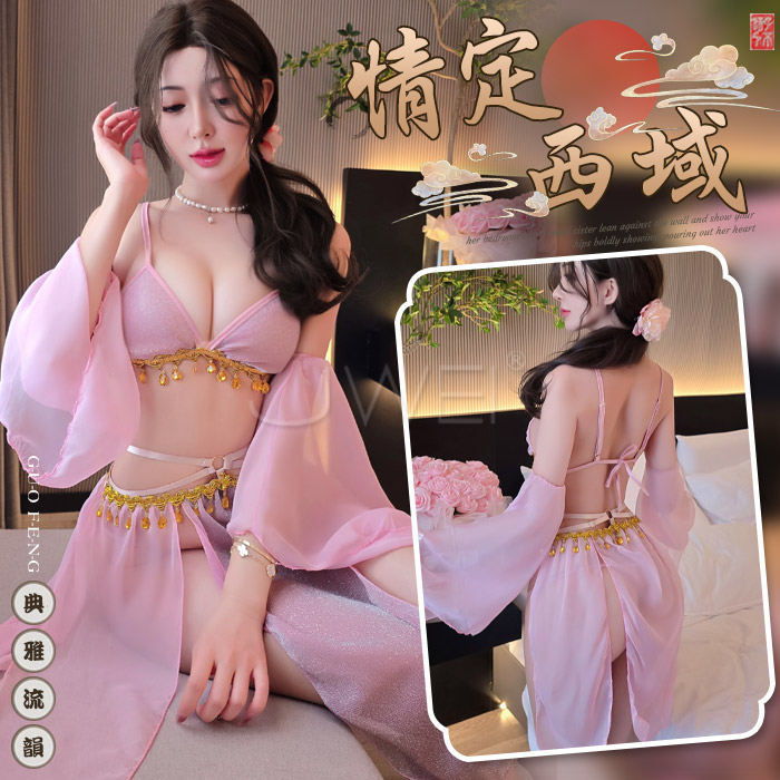 | 粉紅柔紗V領二件式性感睡衣