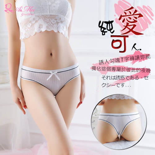 純愛可人!低腰直條壓紋美臀T字褲﹝白﹞