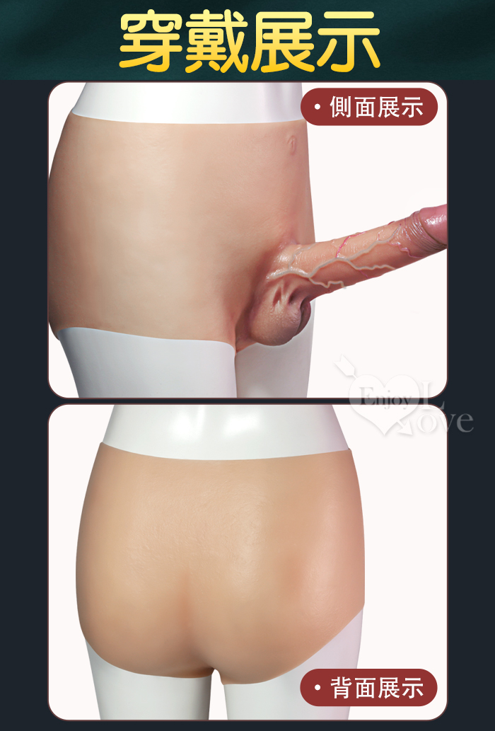 | JIUAI 硬梆梆 ‧ 全矽膠空心陽具穿戴褲 高仿真凸筋皮膚紋理 裸感貼身 - 大號﹝最適合疲軟短小人士﹞