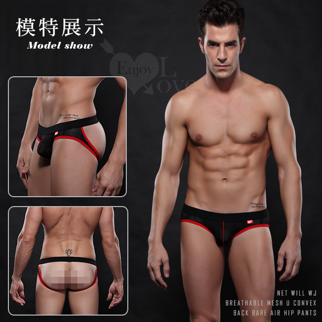 | 【網將WJ】透氣網孔U凸後裸空翹臀內褲﹝黑 S﹞
