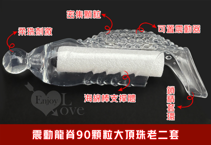 | 取悅 ‧ 震動龍脊90顆粒大頂珠老二套~凸點/環紋/增長增粗物理持久隱身加強套﹝透明色﹞