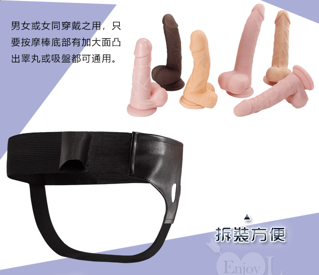 ※ 用途:男女或女同穿戴之用,只要按摩棒底部有加大面凸出睪丸或吸盤都可通用。