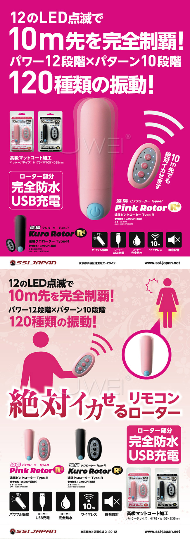 | 日本原裝進口SSI. 遠隔ピンクローターType-R 12x10段變頻遠端操控遙控跳蛋-黑色
