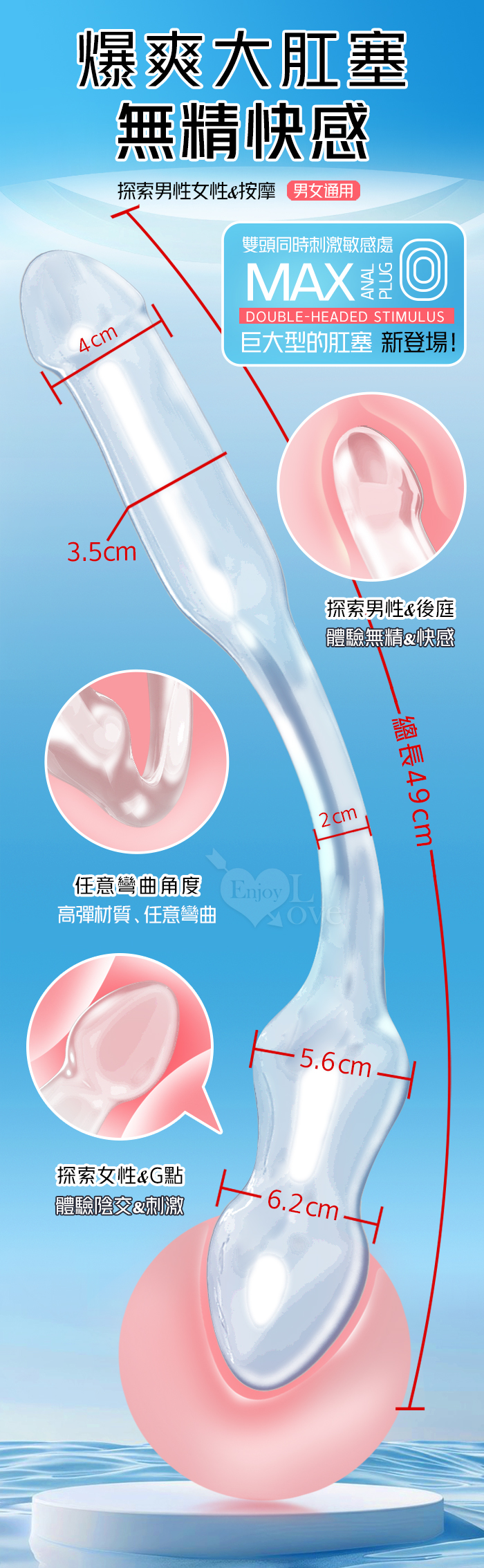 ►您現在的位置:首頁>取悅 ‧ MAX極悅!XL巨大型雙頭水晶按摩棒-前陰後庭/男女皆適用﹝透明色﹞