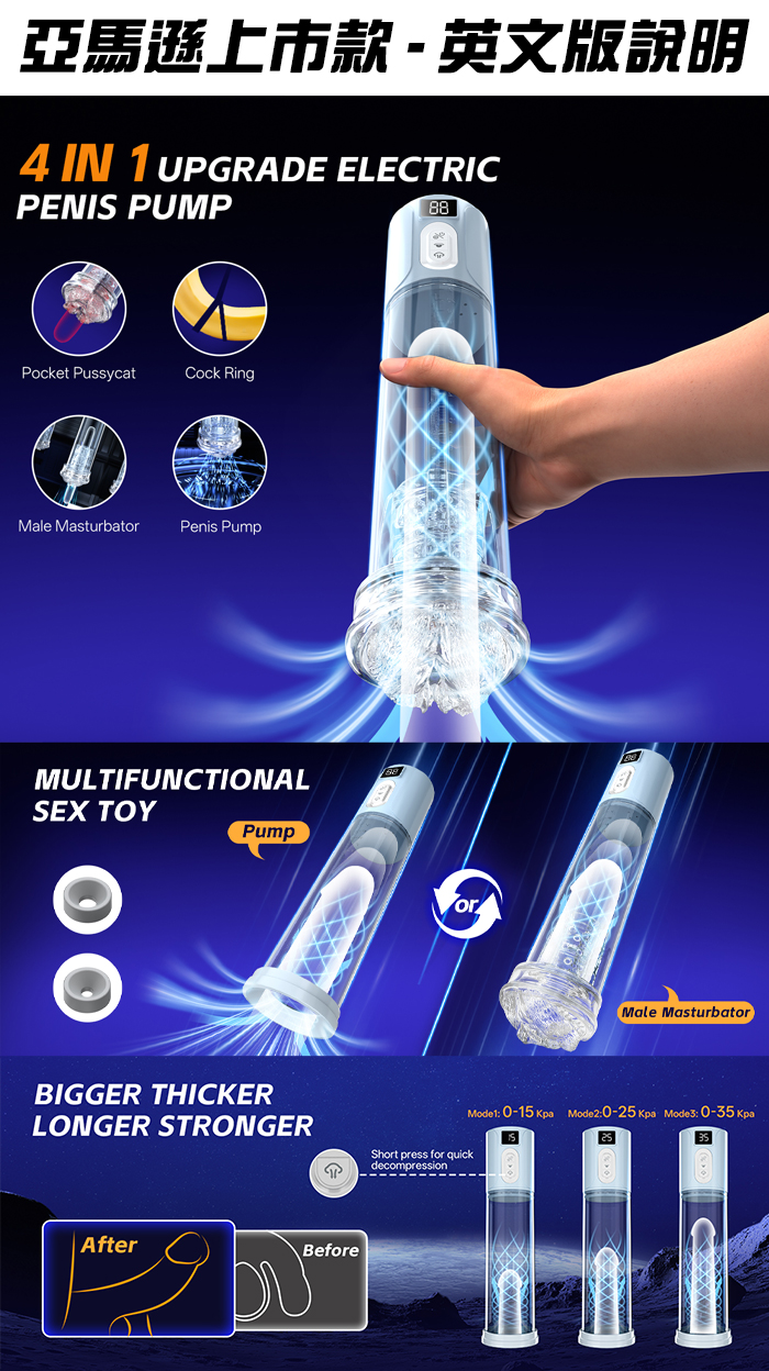 Hgod 巨吸杯 ‧ 戰士.4IN1真空6頻吸吮陰莖鍛鍊助勃飛機杯-全配備~科學鍛鍊+自慰享受 *亞馬遜上市款*