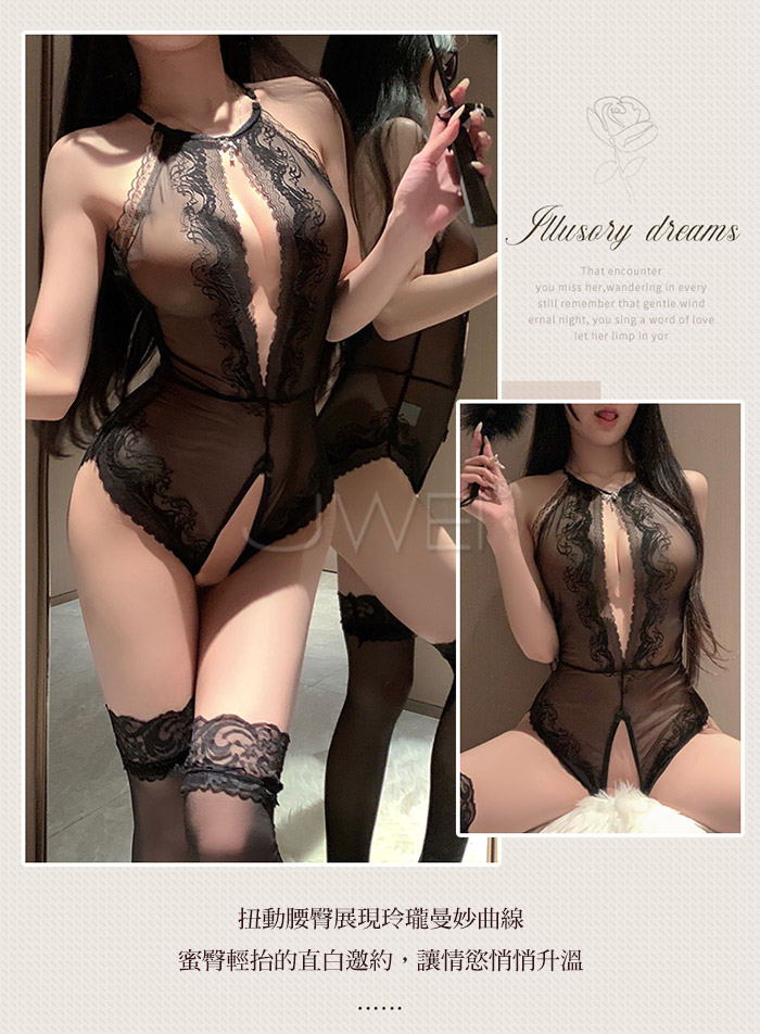 ►您現在的位置:首頁>純愛戀人.蕾絲半露胸網紗美背開襠連體衣【黑色】