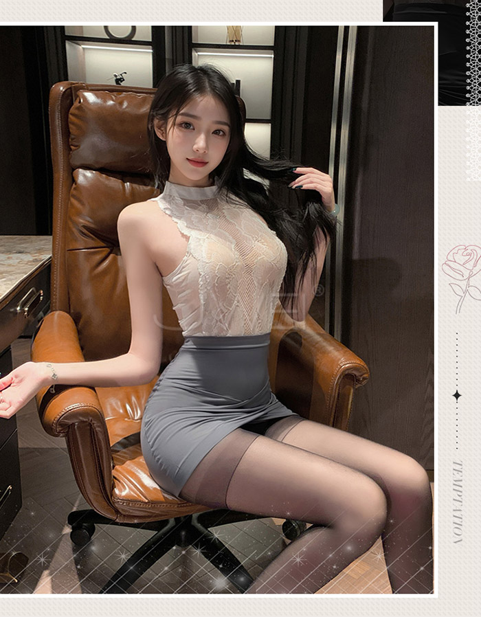 ►您現在的位置:首頁>熱辣小蜜.禁欲蕾絲花紋透胸緊身包臀秘書套裝-灰色【包臀連身裙+T褲】