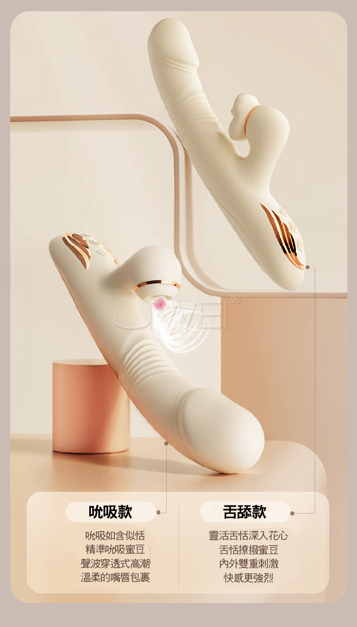 雅赫.7頻強勁伸縮+7頻緊含吮震 螺紋摩擦仿真加溫震動棒【吮吸款】