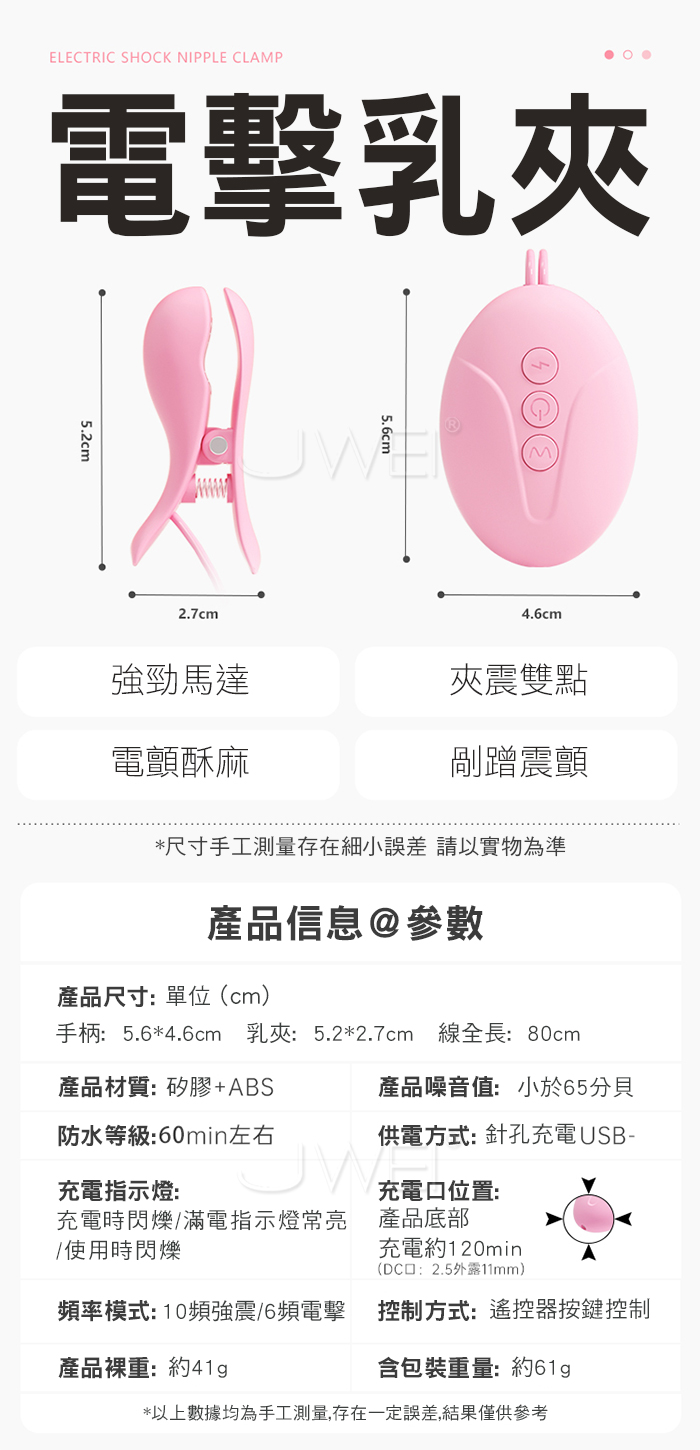 有線電擊乳夾,電顫夾擊,愛慾漸入佳境,6檔可調電擊,酥麻刺激