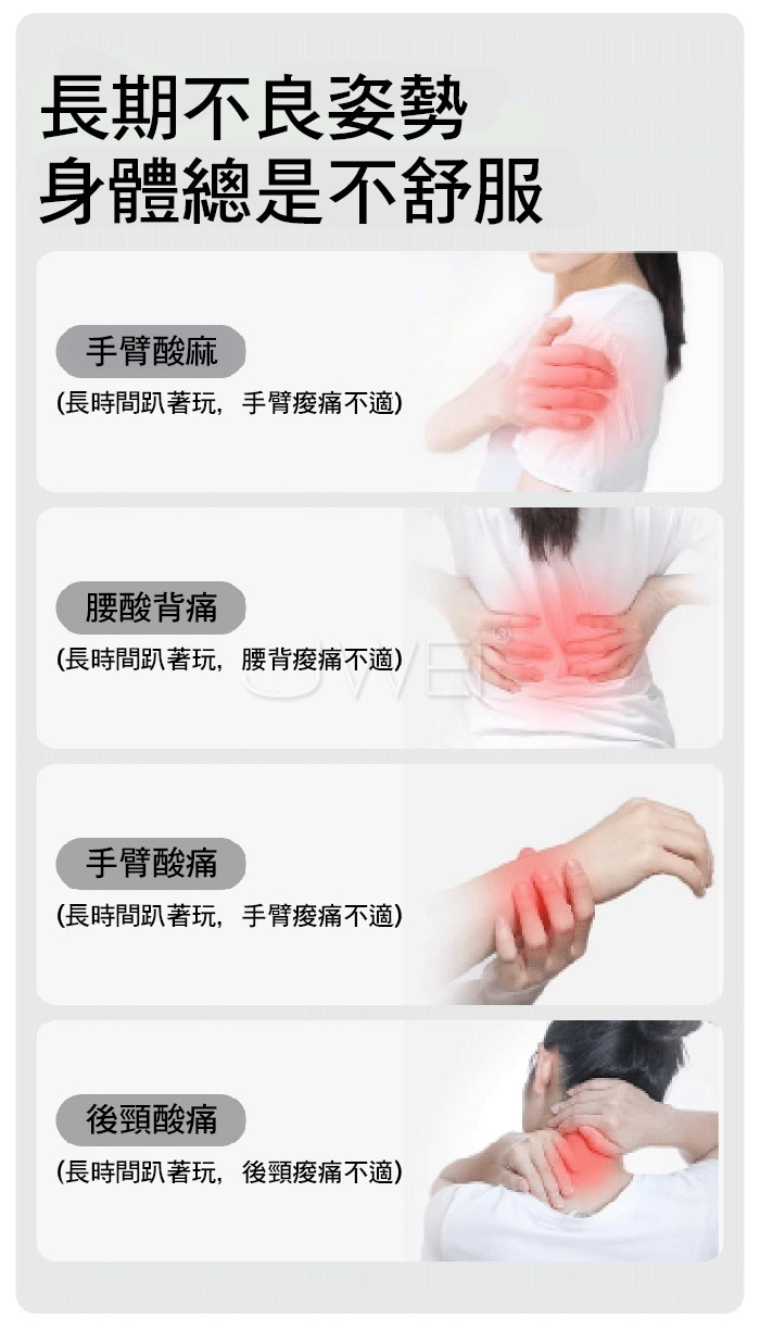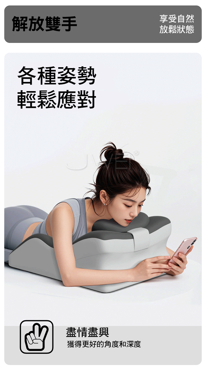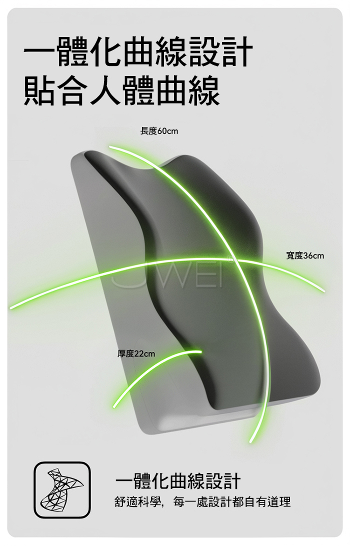 各種姿勢輕鬆應對,一體化曲線設計分區支撐,舒適解壓,放鬆身體肌肉
