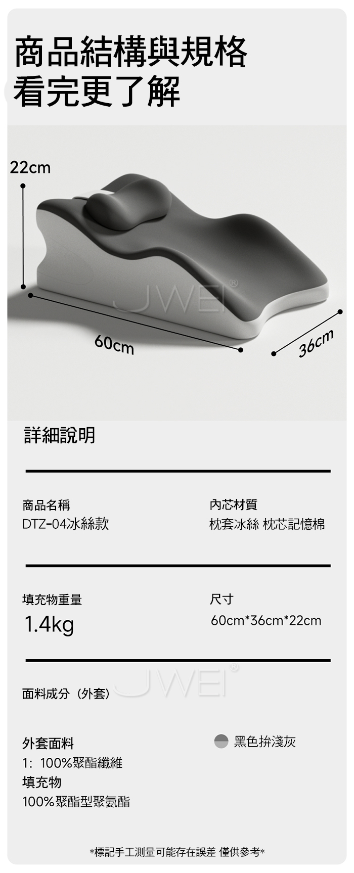 記憶棉內芯,有撐力慢回彈,冰絲涼感面料,耐用易清洗