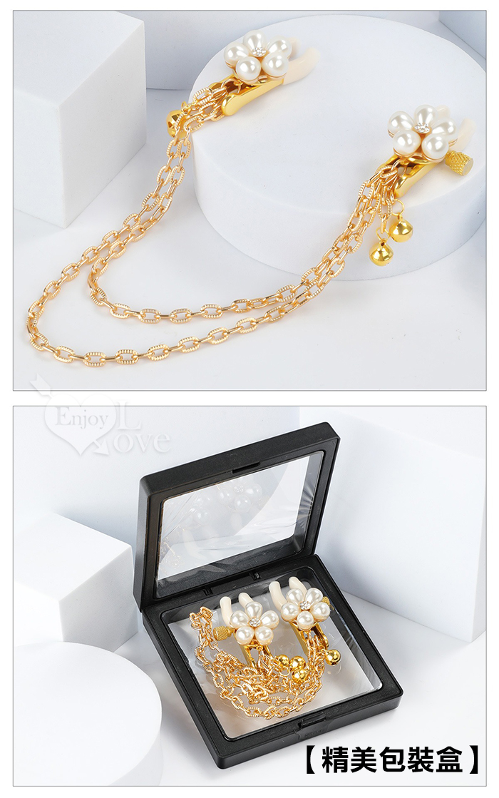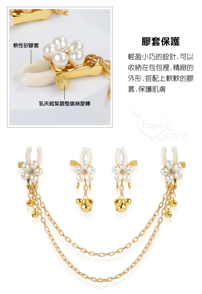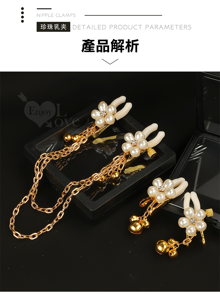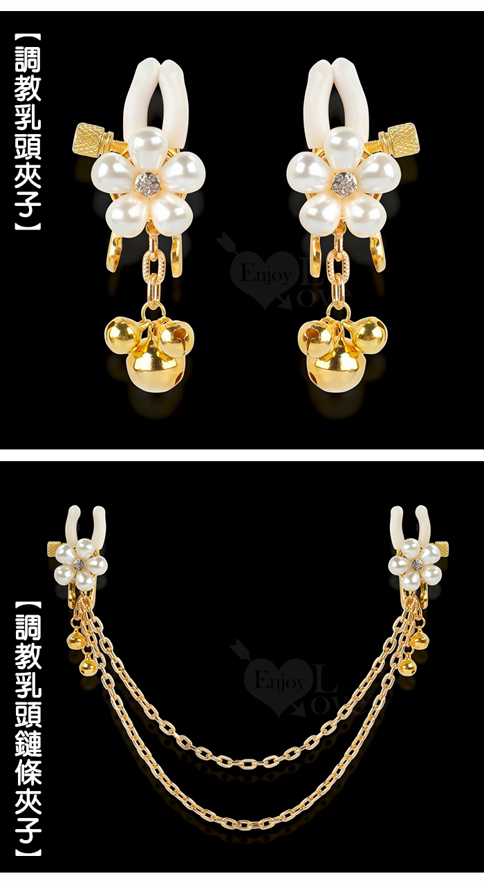 【乳の調戲】高檔珍珠花瓣鈴鐺乳夾~女用調教乳頭鏈條夾子﹝一對裝﹞