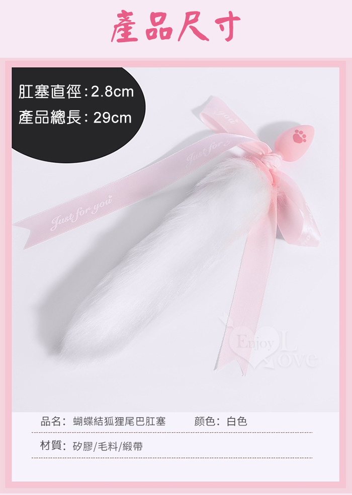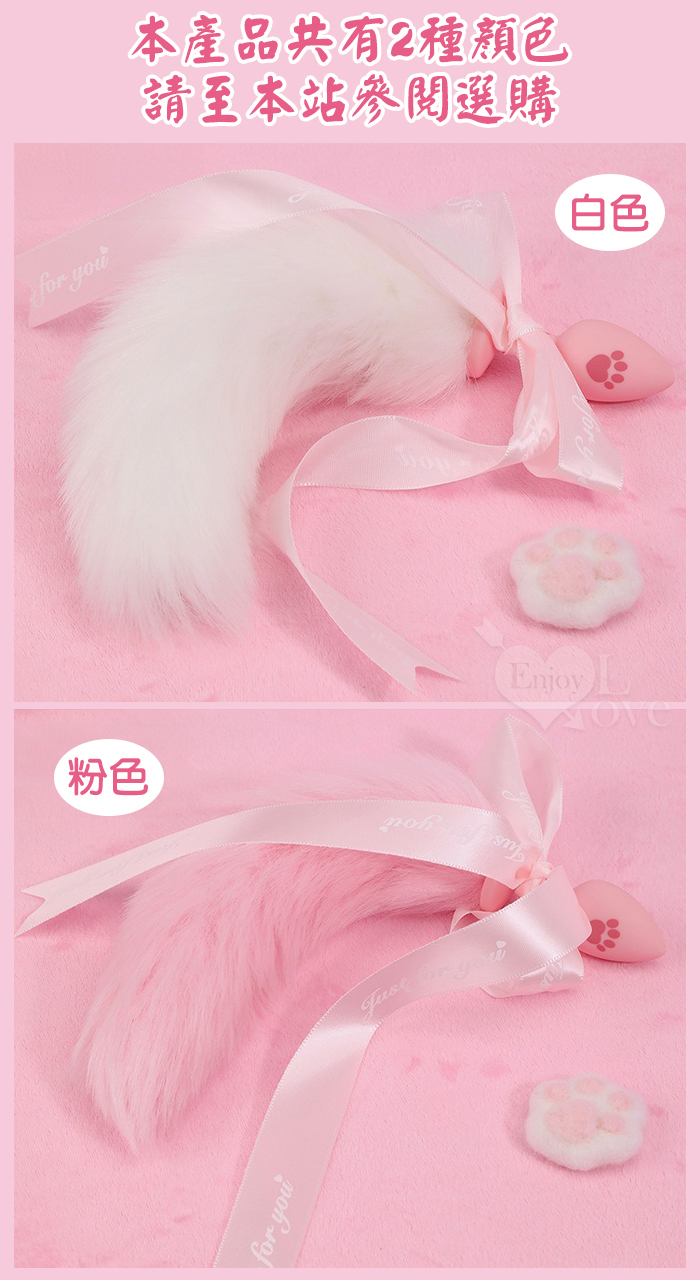 | 激性扮演 ‧ 蝴蝶結狐狸尾巴 可愛猫爪印親膚矽膠肛塞﹝白色﹞