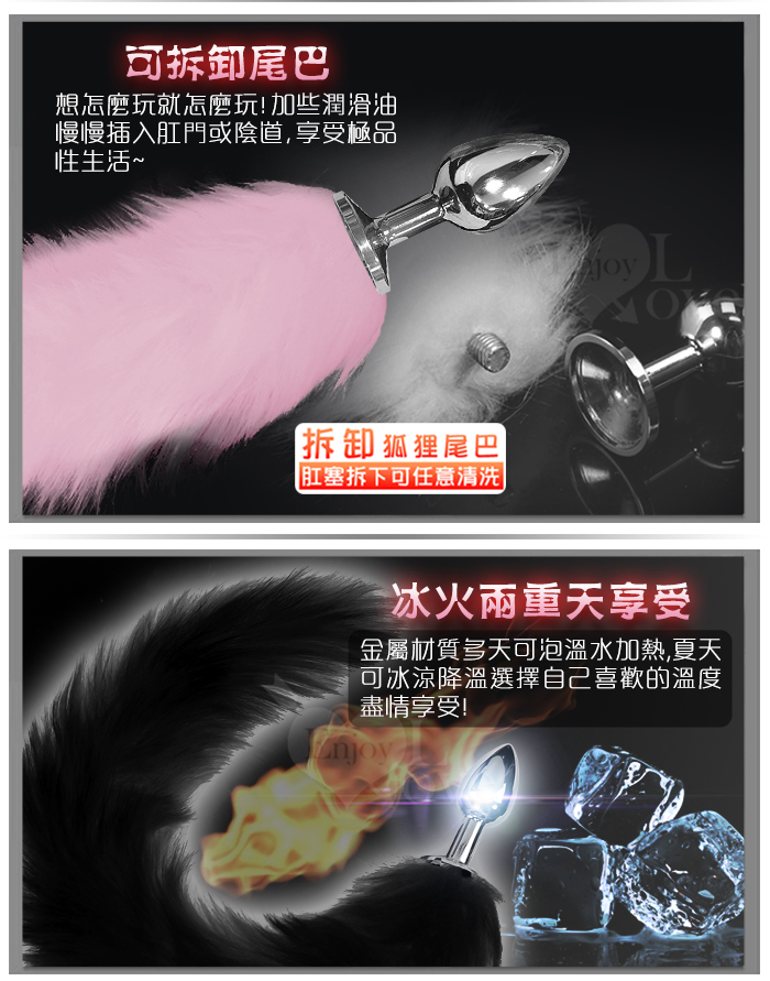 激性扮演狐狸精 ‧ 不銹鋼後庭肛塞+尾巴毛 - 粉﹝M 可組裝拆卸﹞