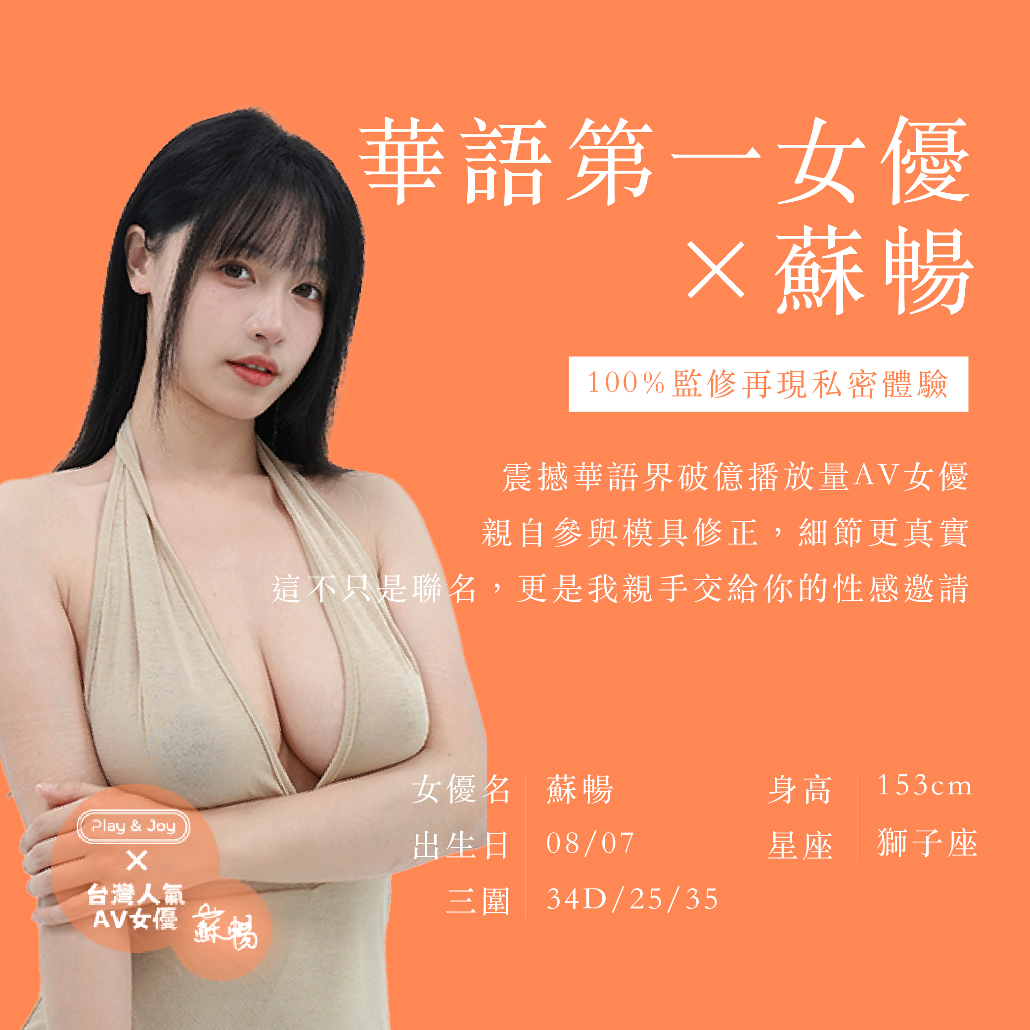 | 蘇暢名器女優口交飛機杯| PLAY&JOY聯名台灣AV女優 男用飛機杯 自慰套 口交設計