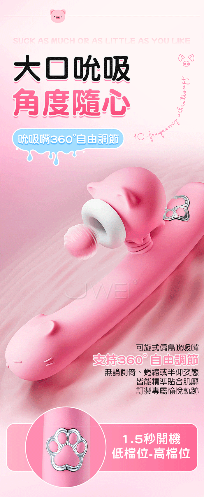 趴趴豬.10頻10速大口強吸強震內頂智能恆溫按摩棒