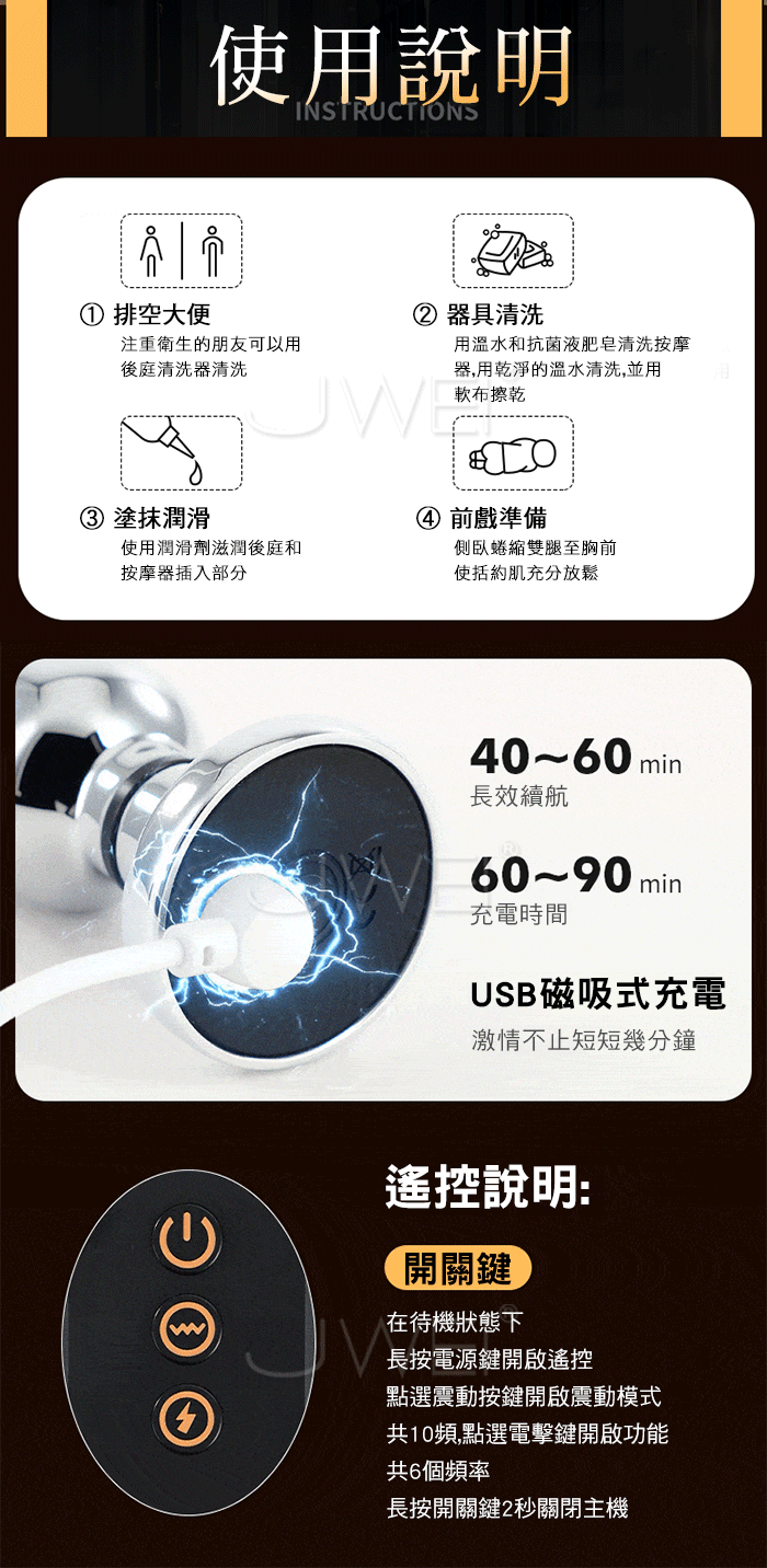 謎姬 MizzZee.電擊肛塞.6頻微電擊刺激+10頻強震金屬遙控後庭調教肛塞