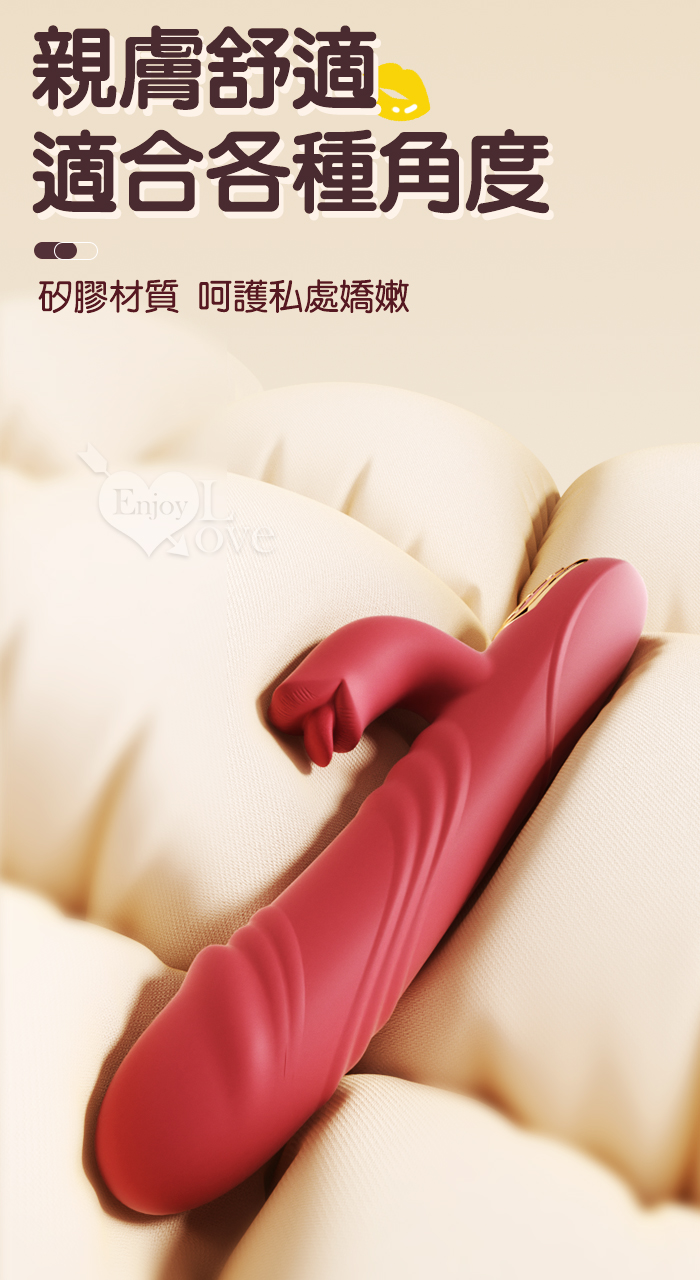 Soul Choice 露西 ‧ 動感10X伸縮10X舔震仿真老二按摩棒﹝衝擊蜜穴+唇舌強震+智能加溫+親膚矽膠+靜音防水/便捷充電﹞紅