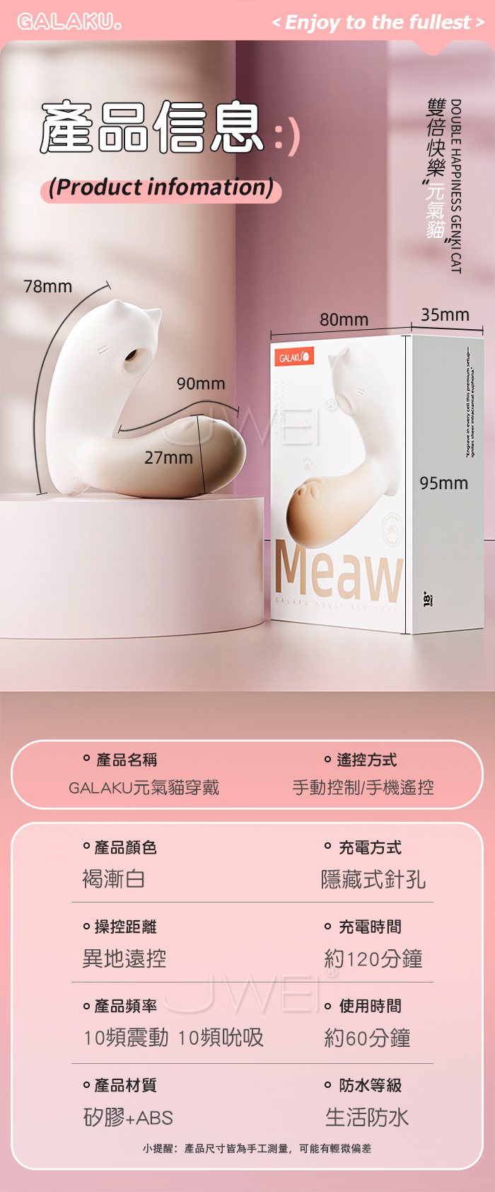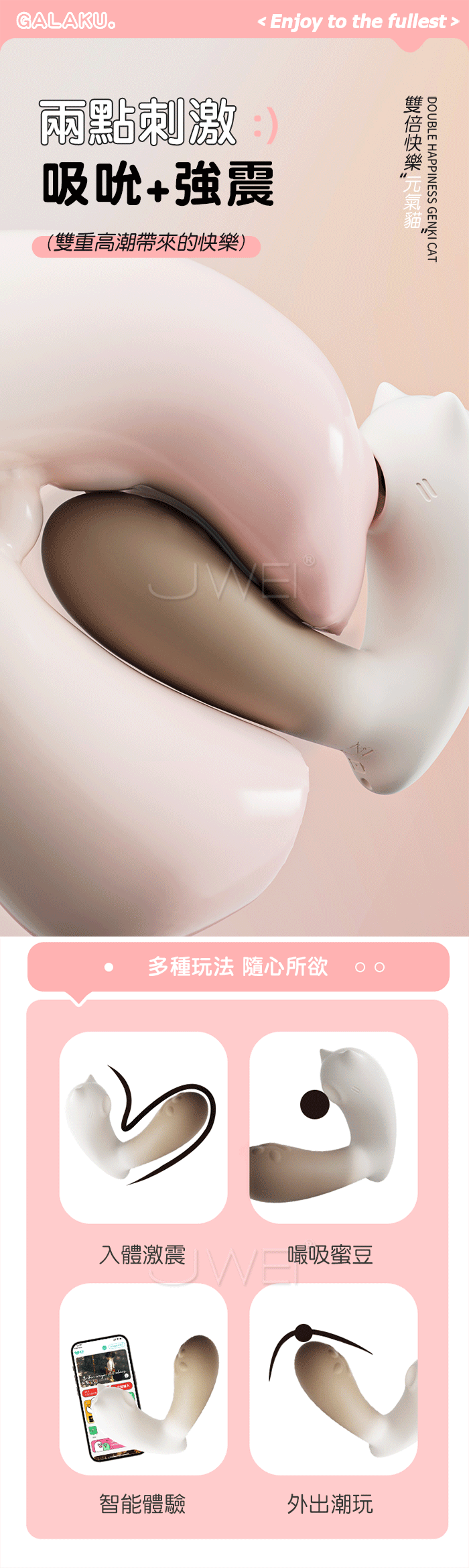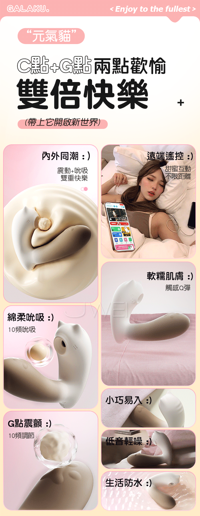 GALAKU.元氣貓 10頻吮吸+10頻震擊G點 APP遠距遙控萌趣穿戴跳蛋
