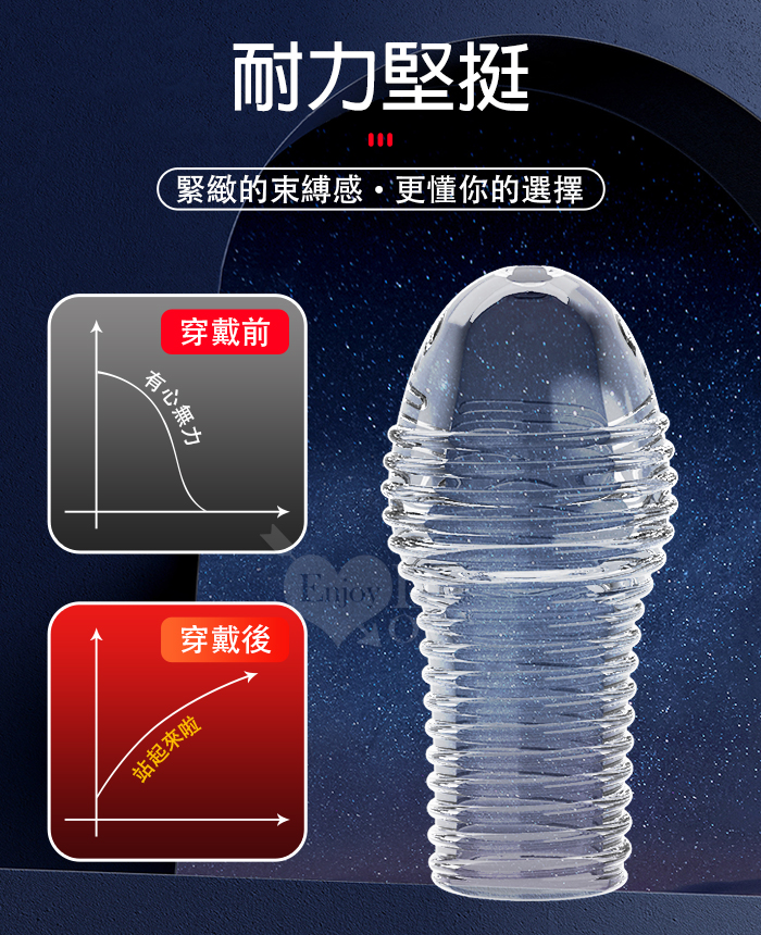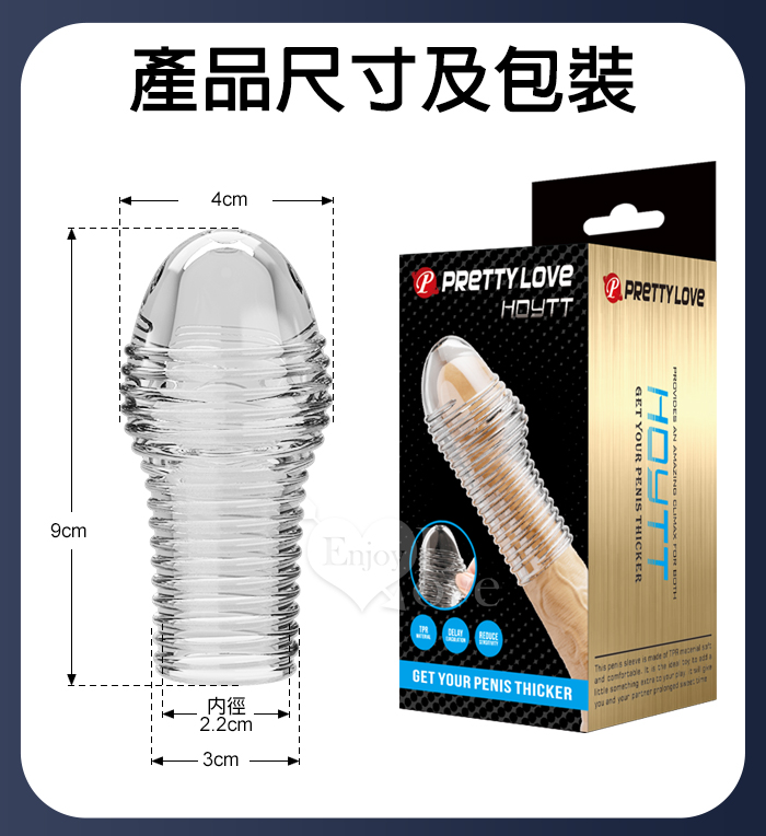 ►您現在的位置:首頁>派蒂菈 ‧ HOYTT 霍伊特 凹凸橫線螺紋刺激/隱身/持久/武裝強化老二造型套 - 頭部出精口設計