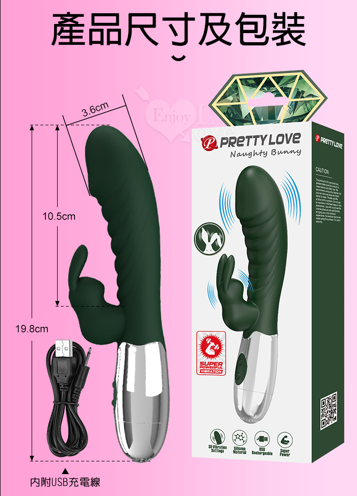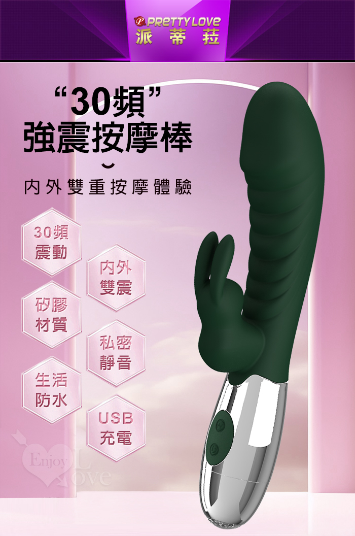 PRETTY LOVE 派蒂菈 ‧ 頑皮兔 內外雙重30頻雙頭同震按摩棒-充電款