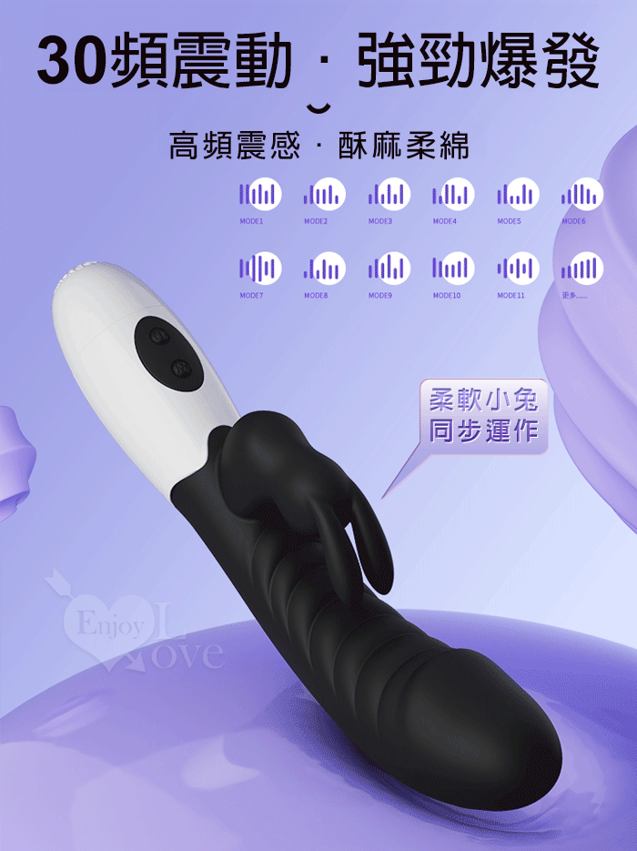 PRETTY LOVE 派蒂菈 ‧ 頑皮兔 內外雙重30頻雙頭同震按摩棒-黝黑