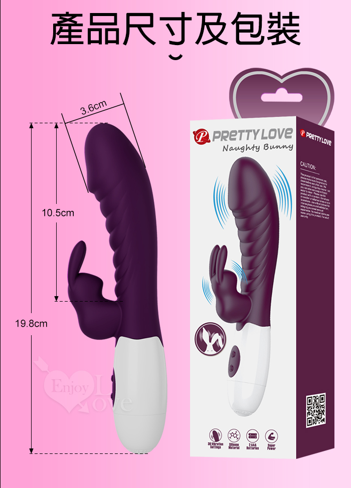 PRETTY LOVE 派蒂菈 ‧ 頑皮兔 內外雙重30頻雙頭同震按摩棒-深紫