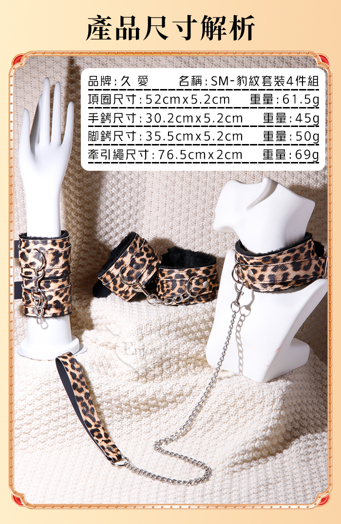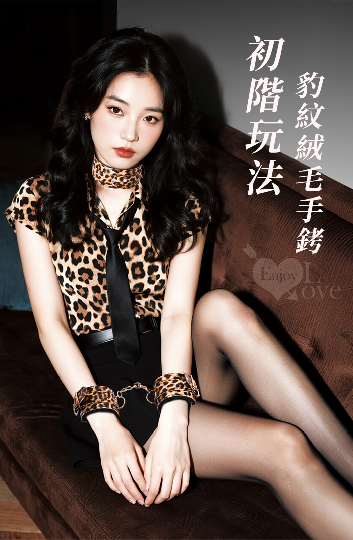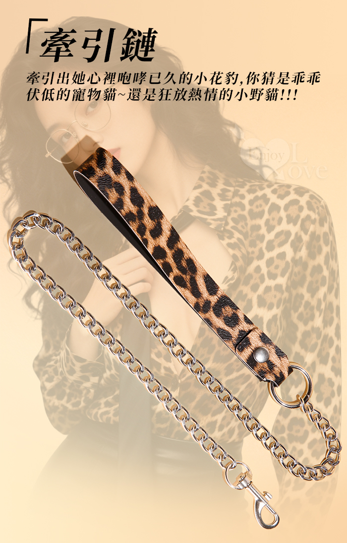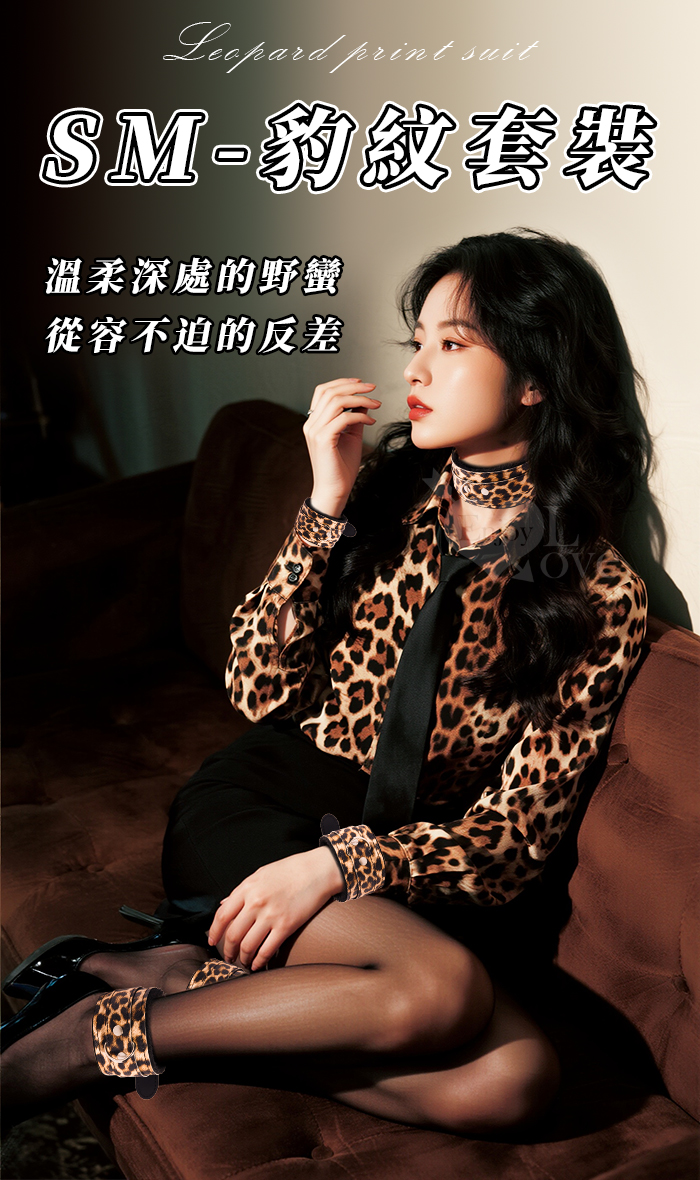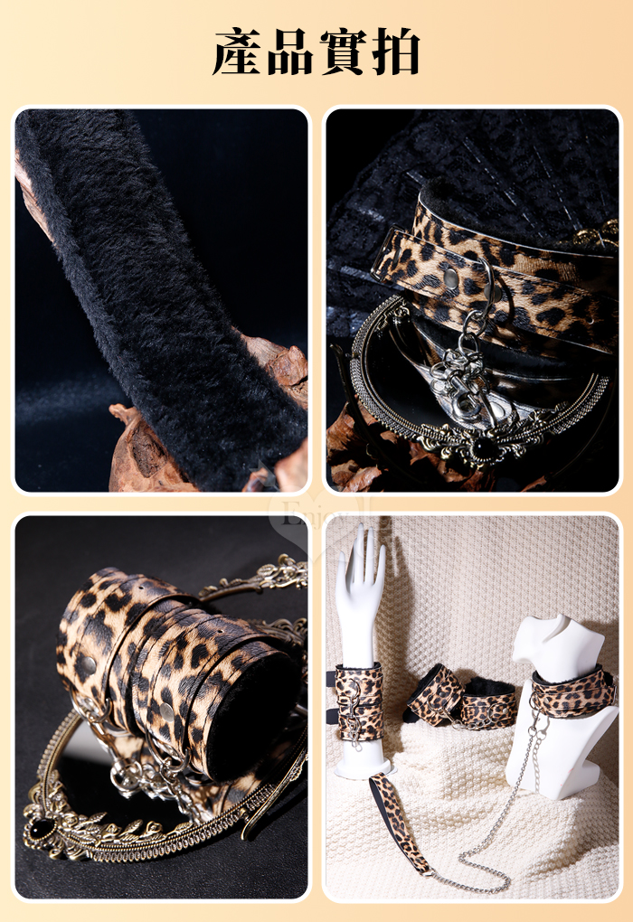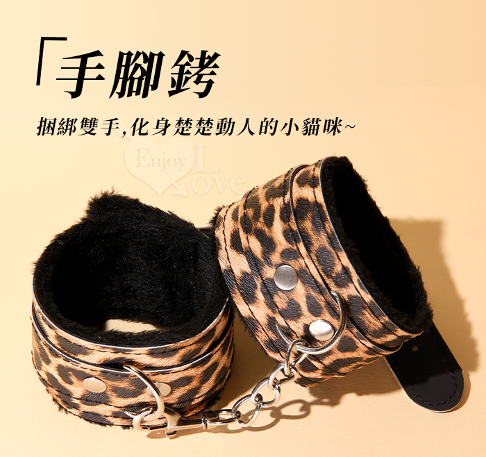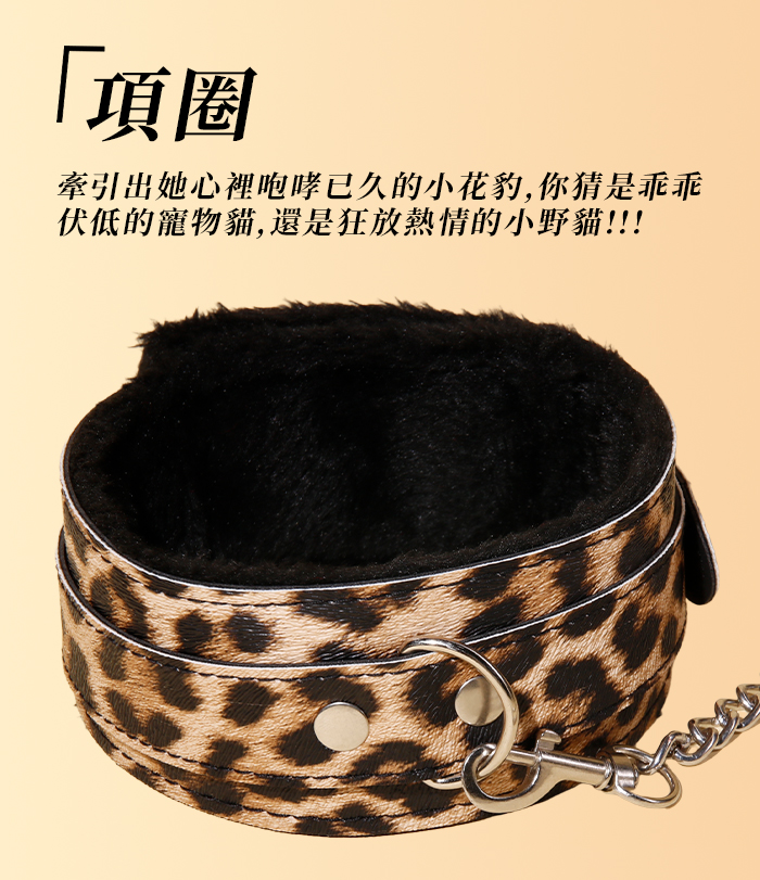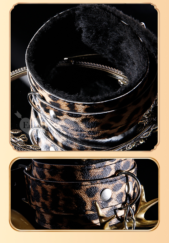 SM-豹紋套裝4件組 ‧ 男女情趣束縛-溫柔展現野性美﹝外置皮革~內置絨毛﹞