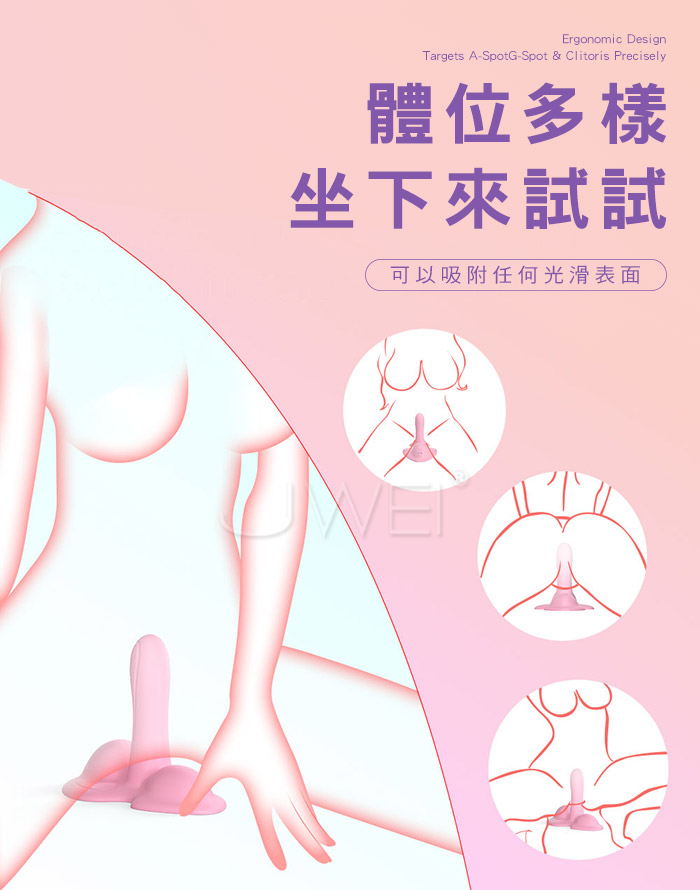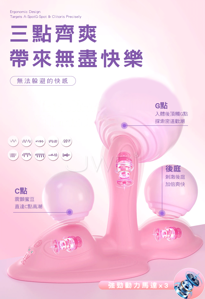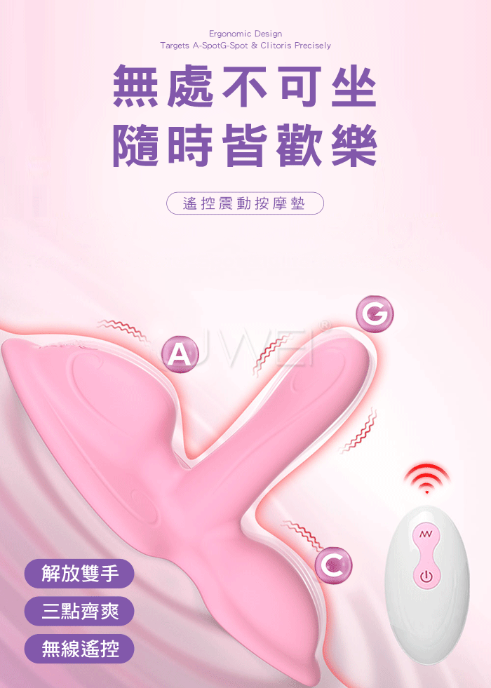 無線遙控,解放雙手~無處不可坐 隨時皆歡樂 三點齊爽,帶來無盡快樂,無法躲避的快感 體位多樣,坐下來試試,可以吸附任何光滑表面 產品規格 ■尺寸: 大小詳如圖片標示 ■材質: TPE+ABS ■特色: 10頻震動、無線遙控