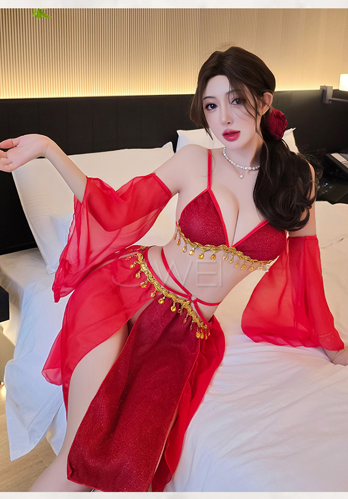 ►您現在的位置:首頁>情定西域.異域風情復古亮片拼接裙擺角色扮演服-紅色【胸罩+短裙+T褲+袖子*2】