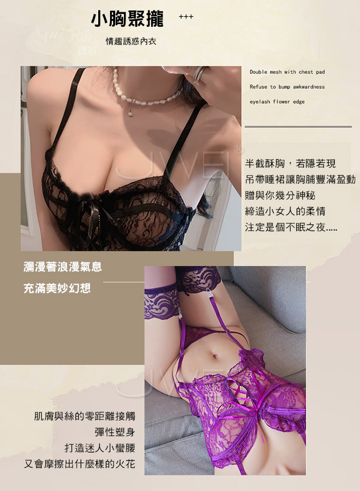 ►您現在的位置:首頁>輕紗綺夢.超A蕾絲吊帶半截裹胸性感吊襪帶馬甲-紫色【馬甲(含吊襪帶)+T褲+紫長筒絲襪】