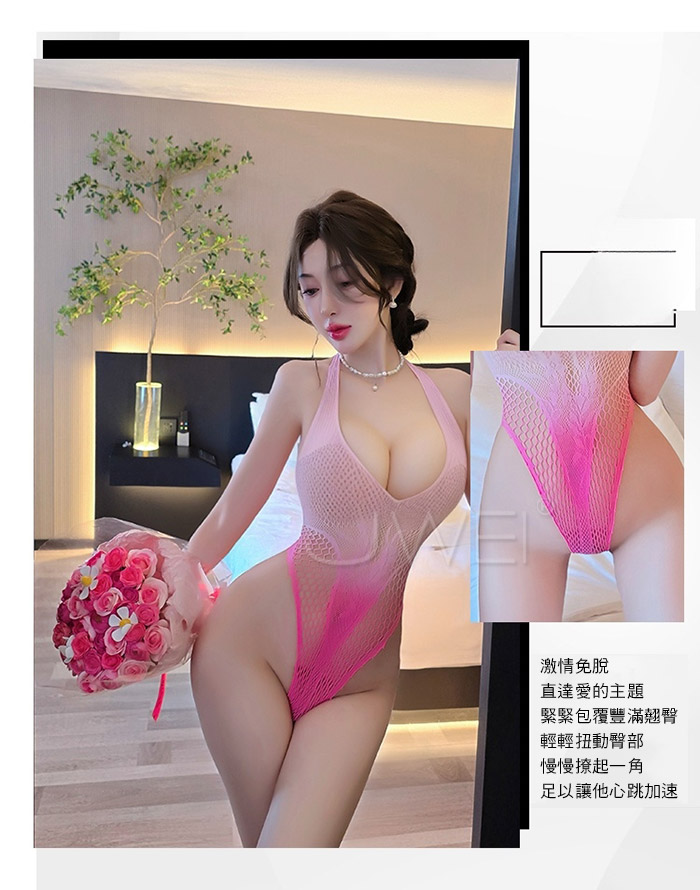 | 織夢花園.漸變色深U高衩大網情趣連體性感貓裝【粉色】