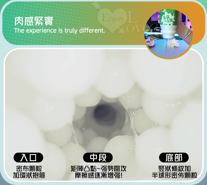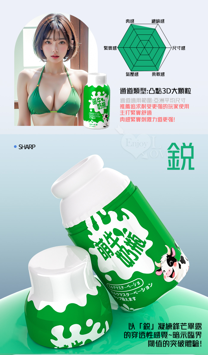 萌牛奶瓶 ‧ 凸點3D大顆粒層峰自慰器﹝高階肉感緊實款-綠色﹞