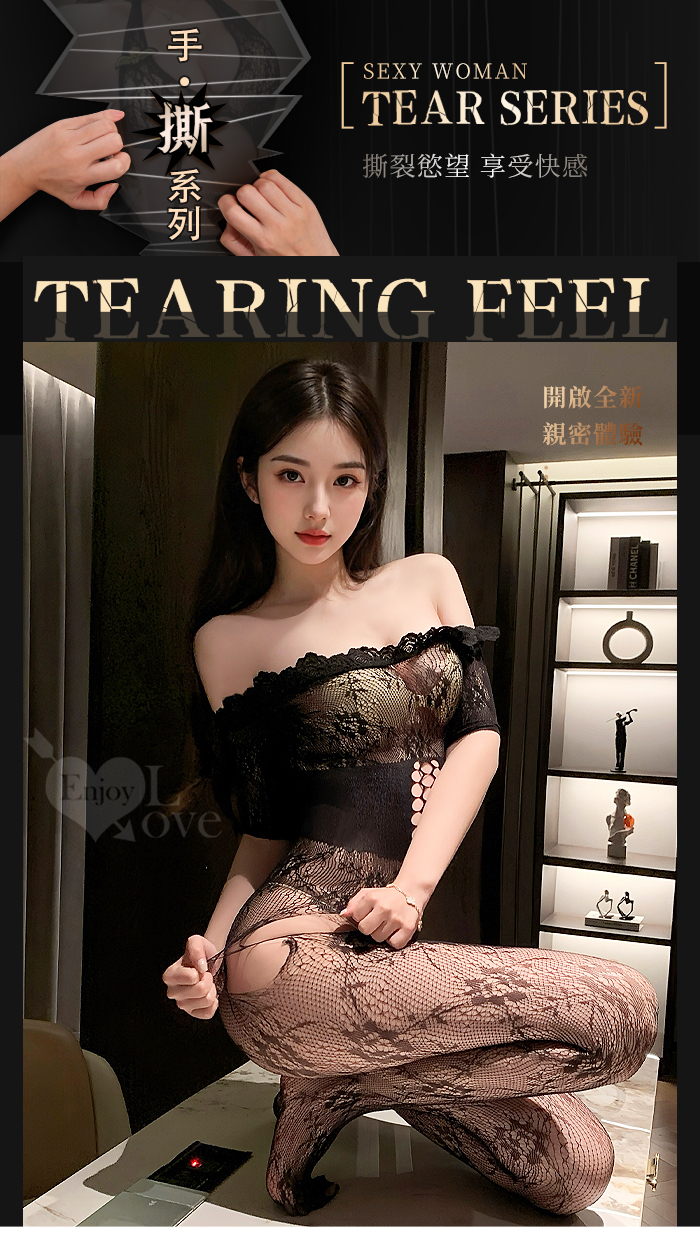 可撕鏤空網紗連身衣|一字美肩緹花設計・免脫開襠裝