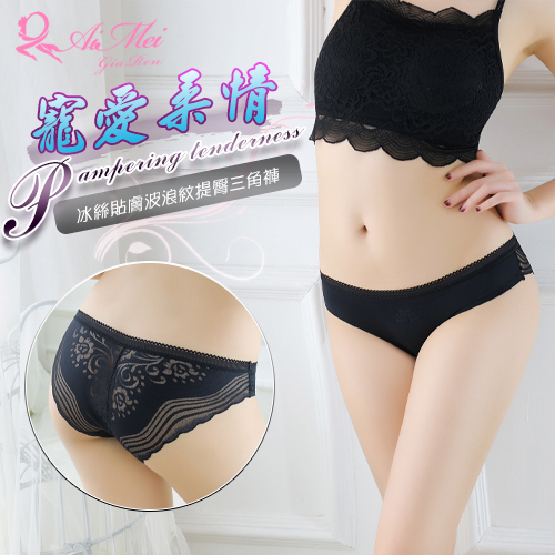 | 寵愛柔情!冰絲貼膚波浪紋提臀低腰三角褲﹝黑﹞