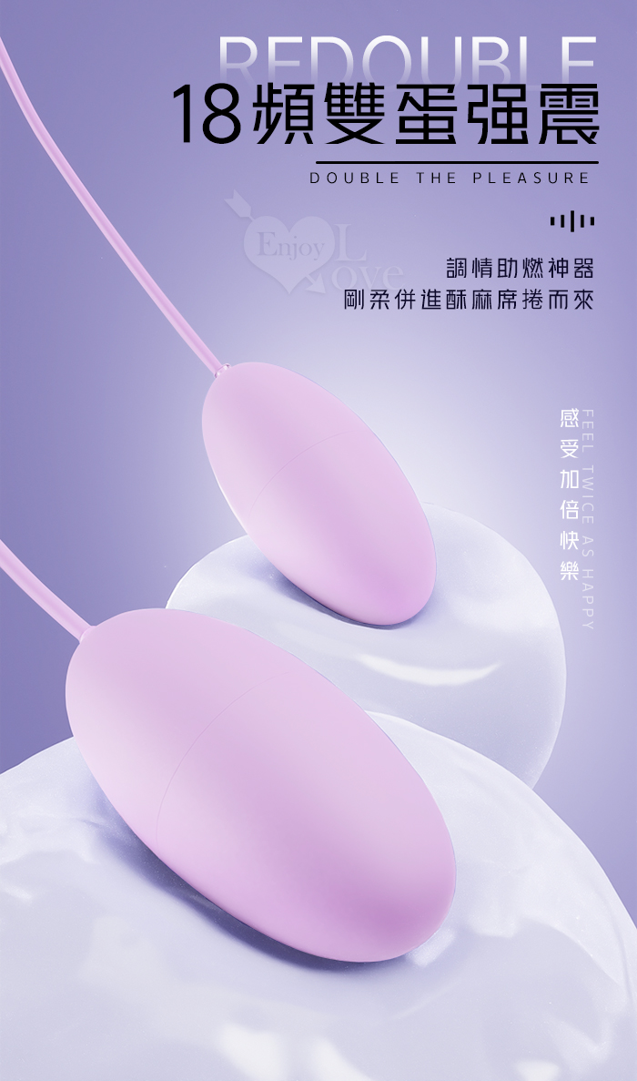 | ROSELEX 勞樂斯 ‧ 雙圓跳蛋 18頻調控強震入體雙跳蛋﹝內外刺激+USB直插供電+雙邊可獨立控制﹞淺紫