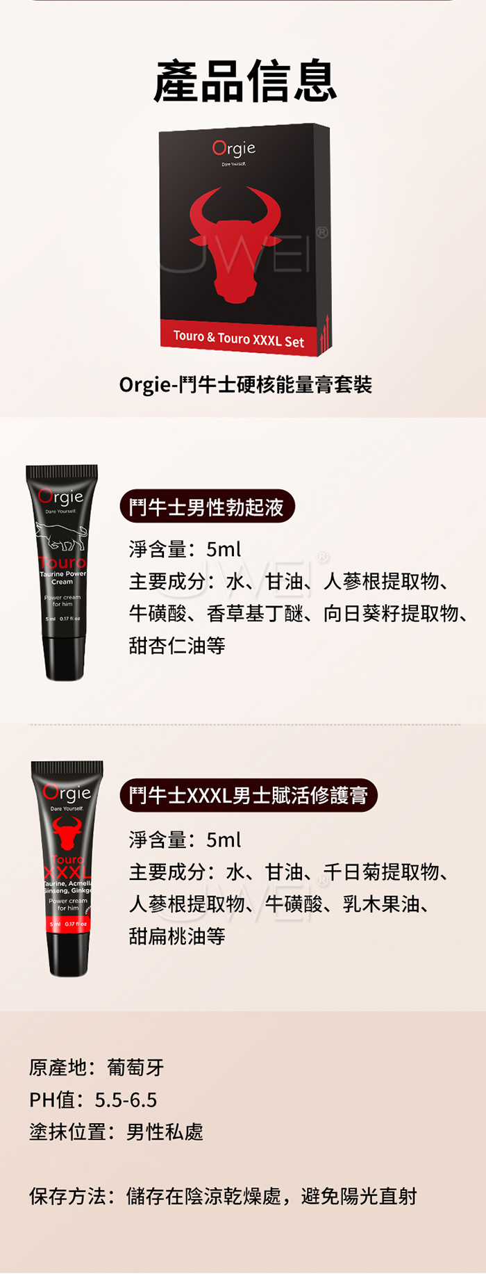 | 葡萄牙Orgie.Touro & Touro XXXL 兩種硬核 快速喚醒 鬥牛士硬核能量膏套裝 5ml【2入裝】