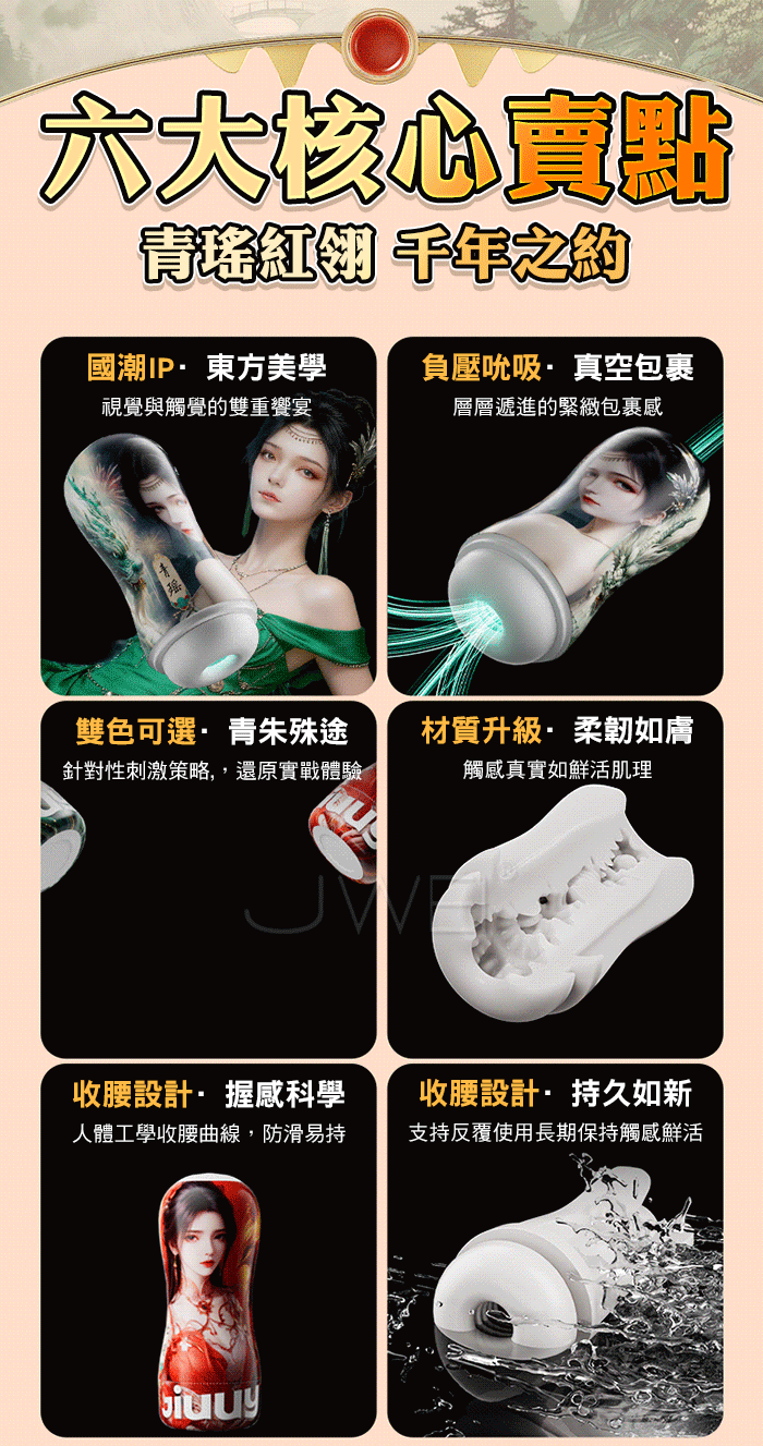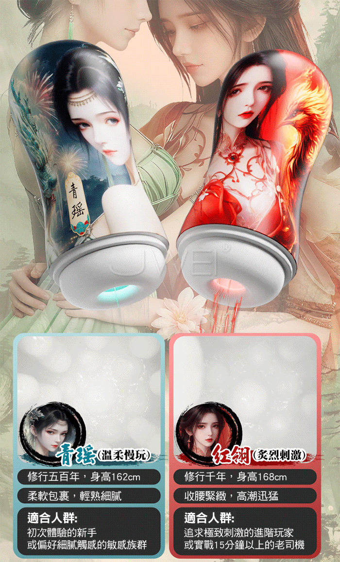 雙妹並蒂,幻夢成真,與你共赴愛之修行 青瑤紅翎 千年之約 收腰設計真空吮吸,強烈的貼合與壓迫感 科學收腰結構,負壓吸包更緊密,形成「真空吮吸」快感 產品規格 ■尺寸:大小詳如圖片標示 ■材質:TPE+PP