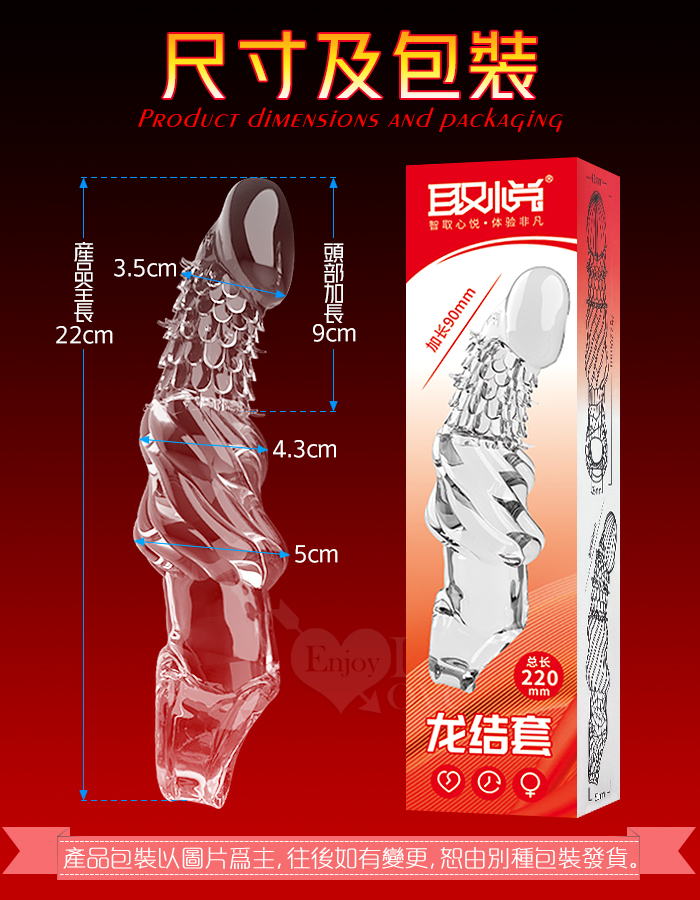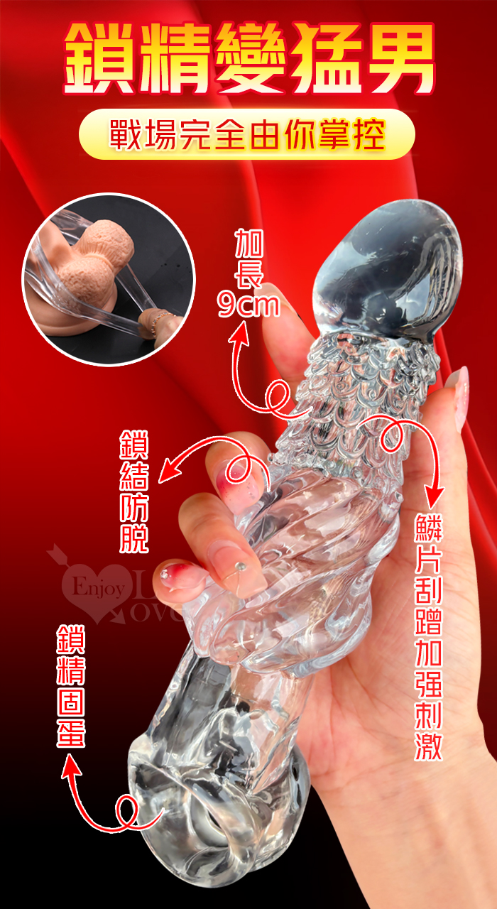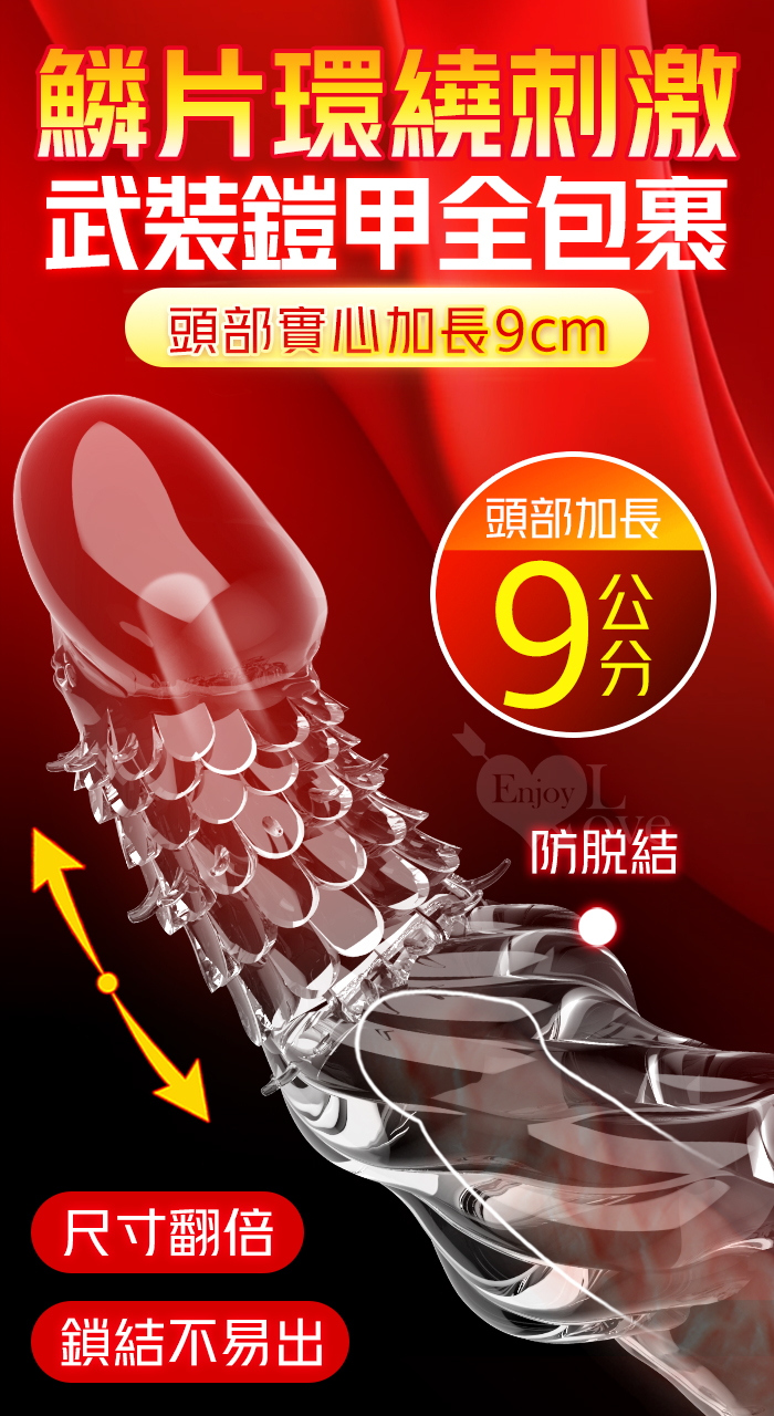 取悅 ‧ 龍結套 龍麟刺激~長時堅挺`前端實心變粗變大加強套﹝增長9公分+凸粗+束精+套蛋﹞
