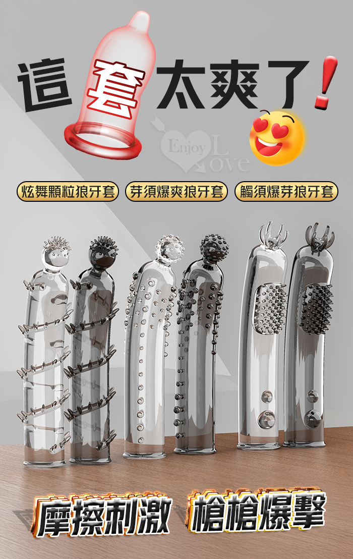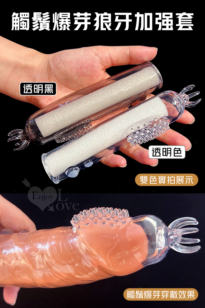 取悅 ‧ 觸鬚爆芽狼牙加強套-59個密集顆粒刺激G點~槍槍爆擊﹝透明黑﹞