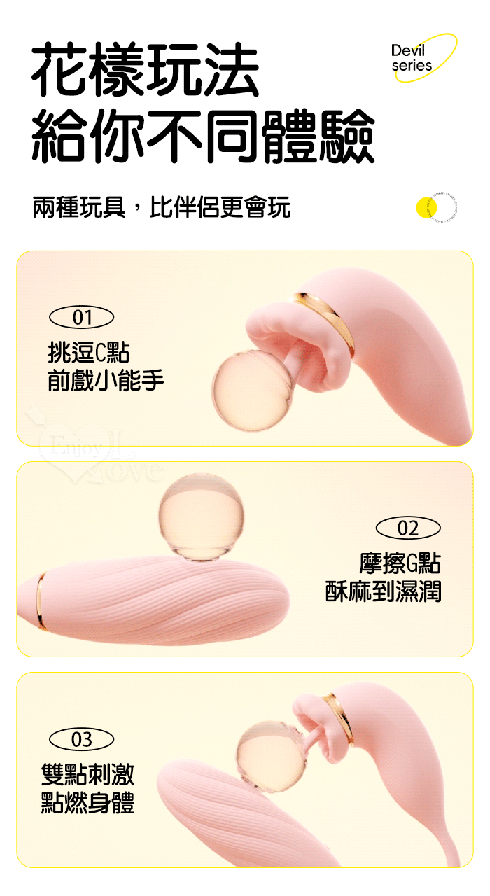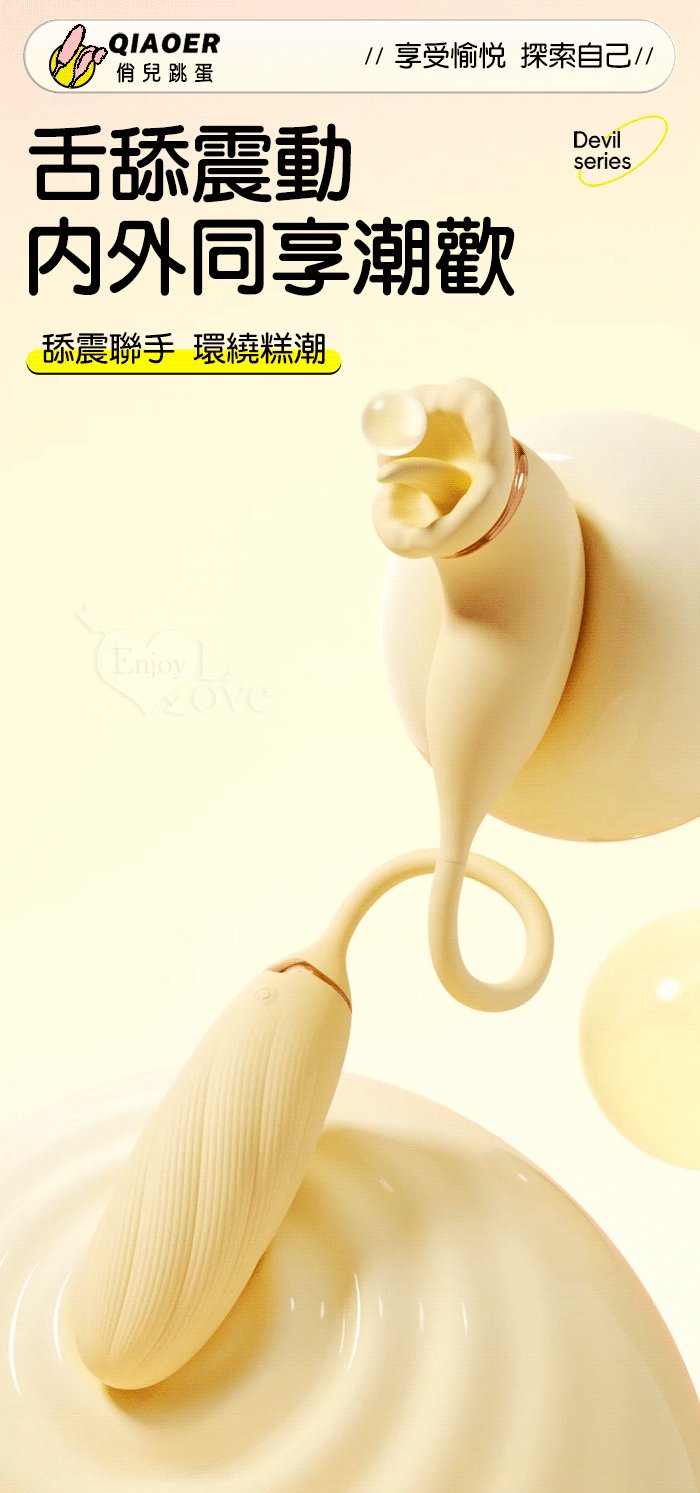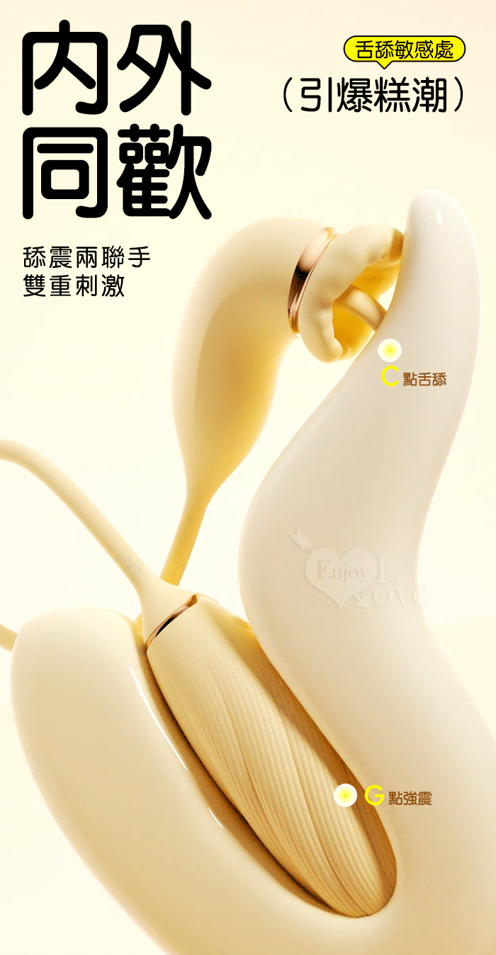 ROSELEX 俏兒 ‧ 魔舌蜜嘴狂撩+長跳蛋 舔震聯手雙組合按摩器﹝花樣玩法/10頻強震/內外同享潮吹/親膚矽膠﹞黄