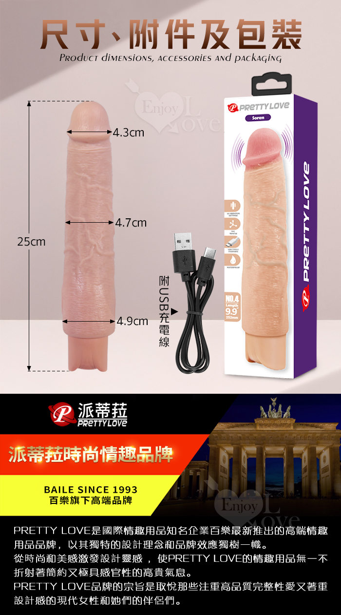 | 派蒂菈 ‧ Soren 索倫 10段變頻震動 膚色肌仿真筋絡超大老二造型充電按摩棒 NO.4﹝9.9″ 25cm﹞