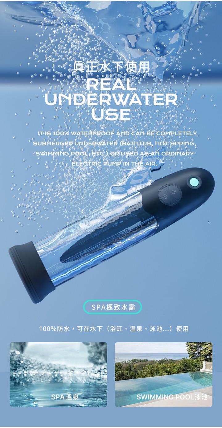- 使用方法:將陽具放入幫浦後,啟動開關即可