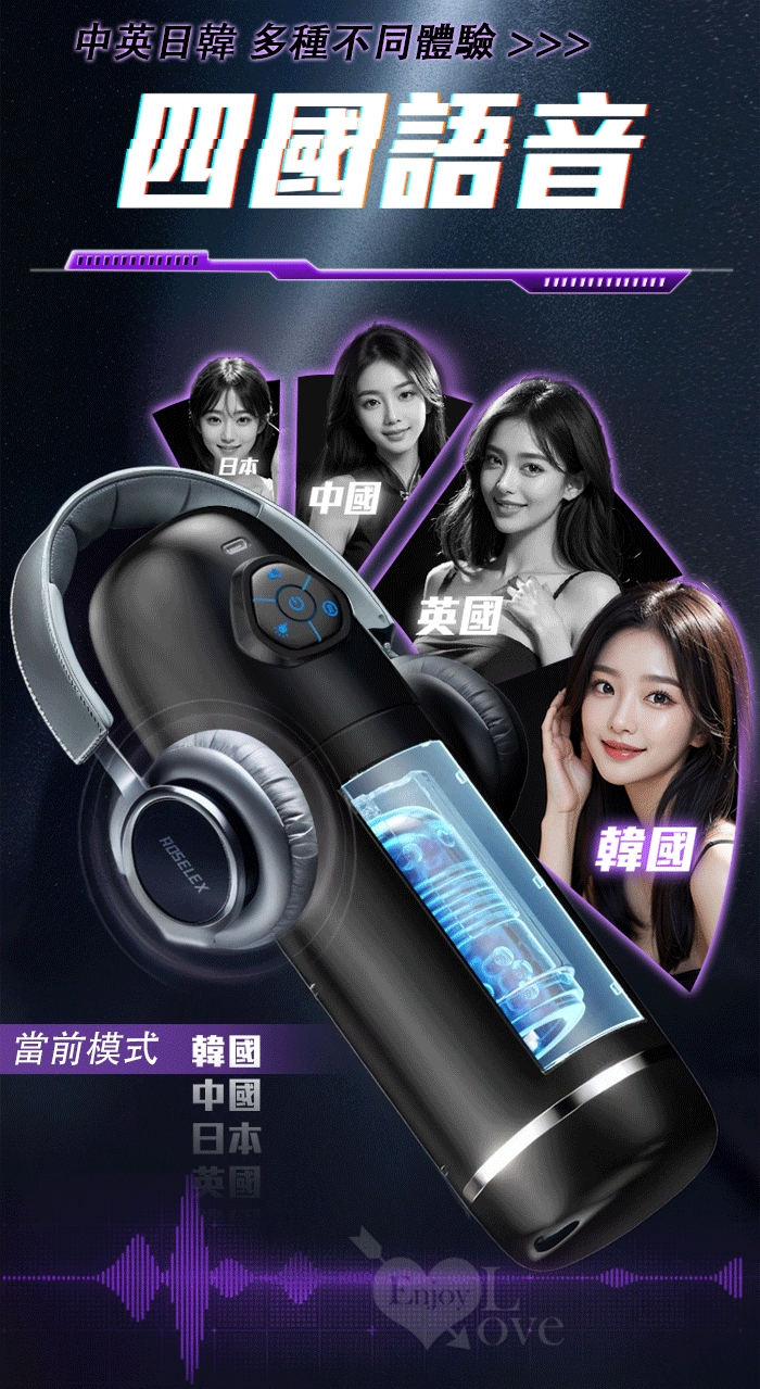ROSELEX勞樂斯.頭號玩家 10頻伸縮旋轉透明腔道元氣飛機杯﹝四國語音呻吟+多彩氛圍燈+耳機﹞白