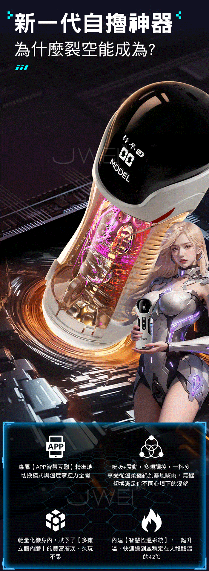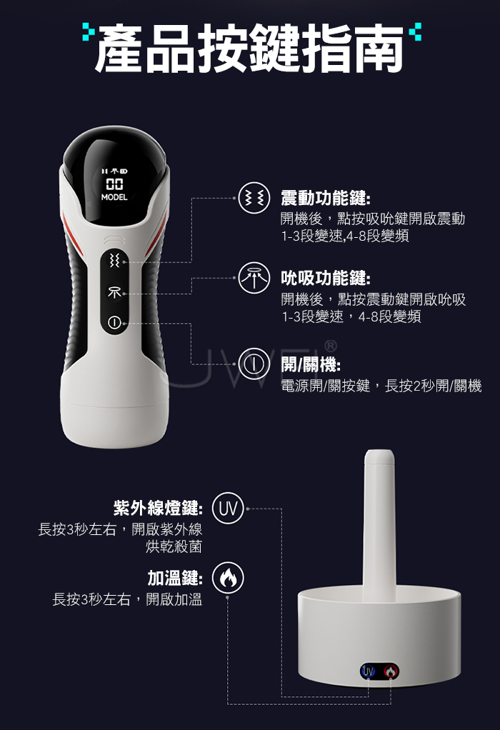 ■功能:8頻震動、8種吮吸、APP智控、加溫+消毒